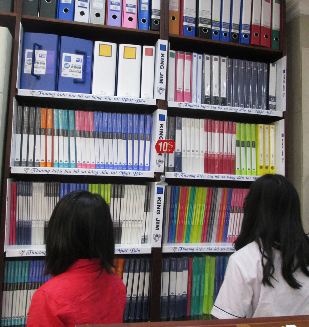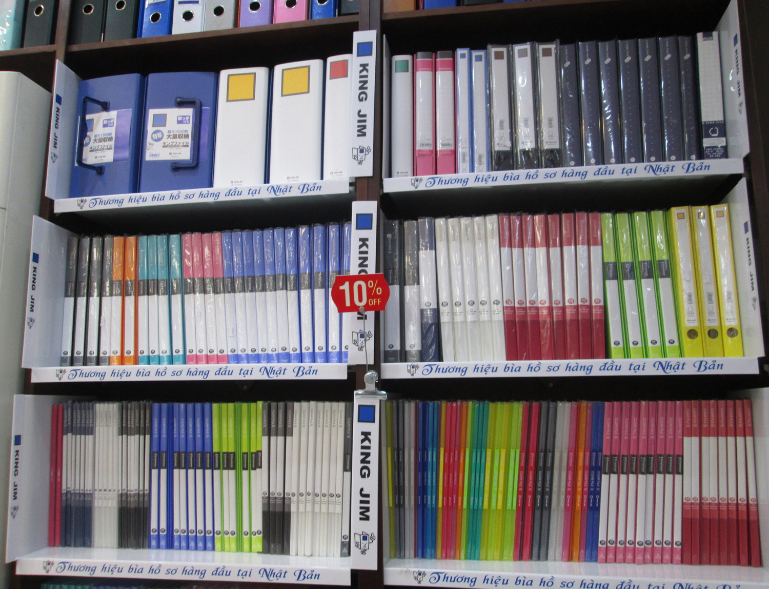 Ở một số nhà sách như: Fahasa Nguyễn Huệ, Fahasa Tân Bình, Fahasa Tân Định… Bìa hồ sơ của King Jim (Việt Nam) được trưng bày trên kệ với vị trí trung tâm nhà sách và thiết kế bắt mắt thu hút sự chú ý của khách hàng khi đến với nhà sách Fahasa.