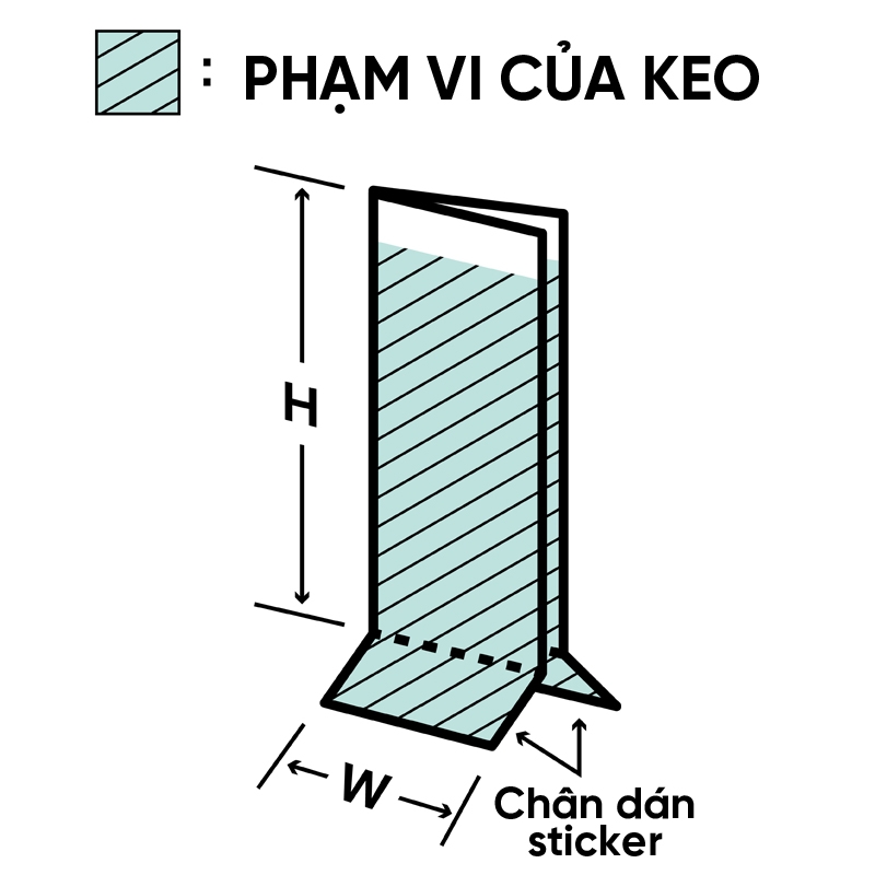 | Tháo lớp bảo vệ mặt keo | Gập phần đế dựng lại | Ép phần thân chính thẳng đứng |
