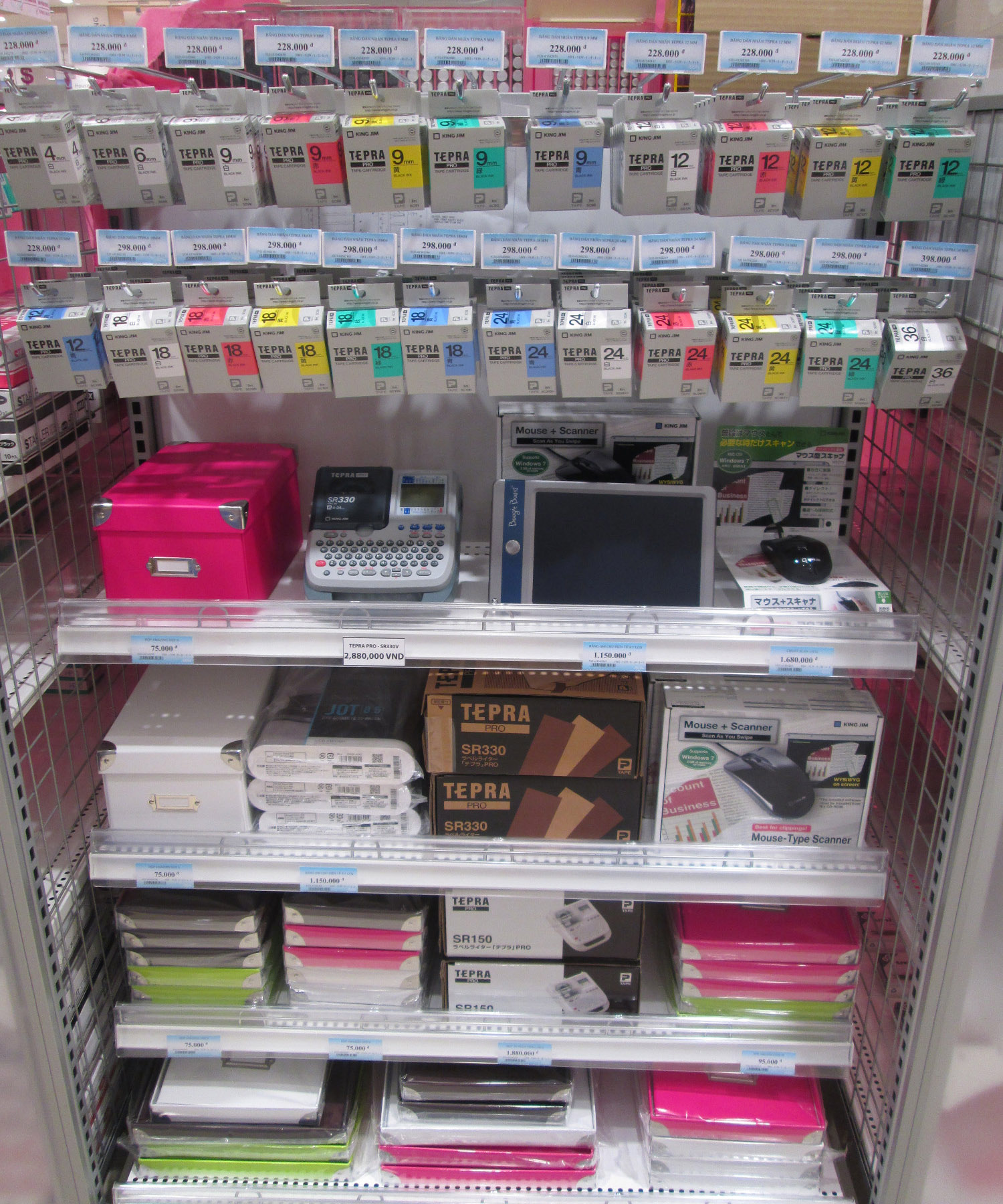 King Jim (Việt Nam) còn cung cấp những sản phẩm điện tử tiện dụng với công nghệ mới nhất từ Nhật Bản như: Máy in nhãn, chuột scan, bảng điện tử Boogie Board…Tại gian hàng, khách hàng còn được tư vấn và cơ hội sử dụng thử các tính năng của sản phẩm.