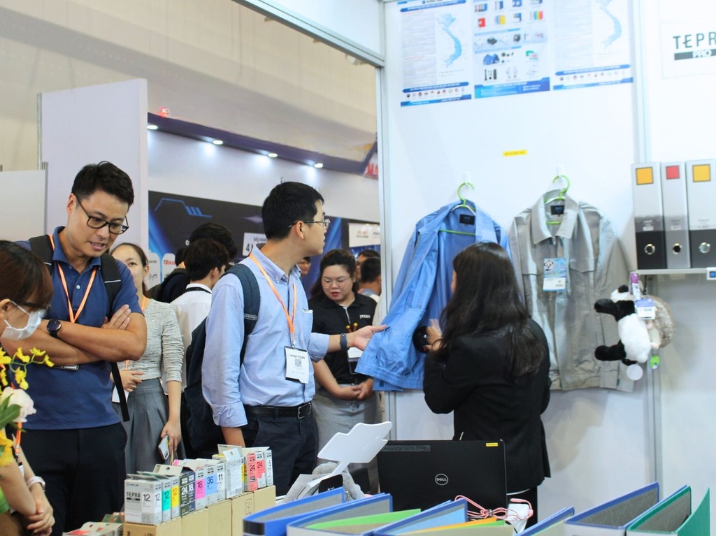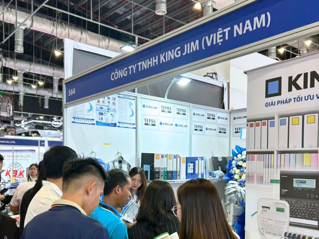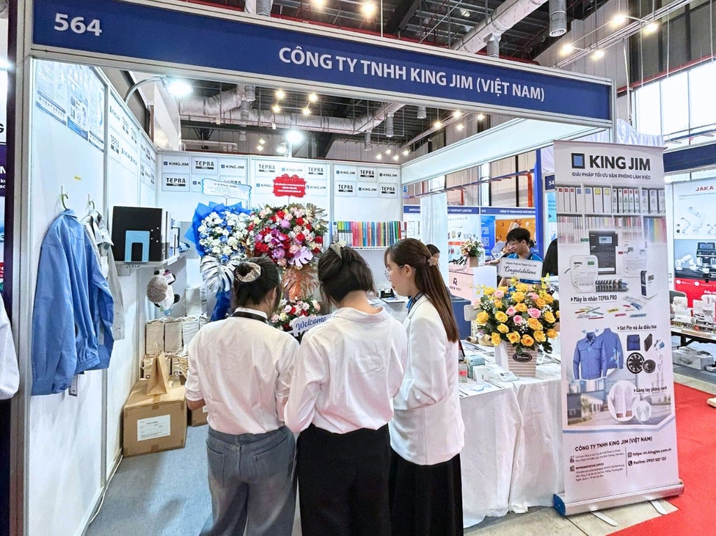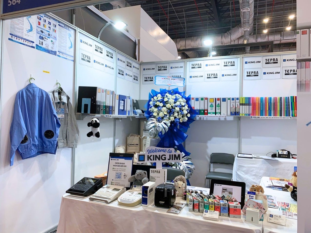 Tại triển lãm lần này, King Jim (Việt Nam) trưng bày các sản phẩm như các dòng bìa hồ sơ, máy in nhãn Tepra Pro (SR-R980, R170V, SR5900GS), đặc biệt là model mới ra mắt SR-R680. Bên cạnh đó là các thiết bị tiện ích cho văn phòng như micro kèm loa SPMC10, đèn cảm ứng cảnh báo, cùng sản phẩm bảo hộ lao động như áo điều hòa, găng tay chuyên dụng 3904, 3760, BX-527, BX-803,…