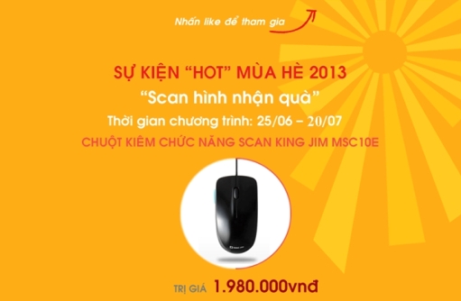 Sau hơn 3 tháng Mouse Scanner MSC10E tung ra thị trường, sản phẩm đã gây được sự chú ý của các giới truyền thông và khách hàng. Hơn thế nữa, để tạo nên không khi sôi động cho mùa hè, King Jim Việt Nam đã tổ chức cuộc thi “Scan hình nhận quà” với tổng trị giá giải thưởng hơn 1 tỷ đồng bao gồm 5 con chuột có chức năng scan và 4.000 voucher giảm giá 20% khi mua chuột Scan. Tham gia sự kiện này, bạn có cơ hội sở hữu chuột scan cao cấp của King Jim hoàn toàn miễn phí để trải nghiệm công nghệ đỉnh cao.