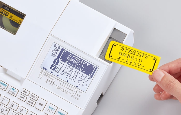 Cắt bo góc nhãn với tính năng “Auto Trimmer” ※ Tính năng này không hỗ trợ với các loại: băng ép nhiệt (iron-on), giấy cao cấp, băng chịu nhiệt, băng masking "mt", nhãn cắt sẵn, băng từ, băng chuyển nhiệt, ống co nhiệt, ribbon và các loại băng có khổ 4mm hoặc 6mm. |